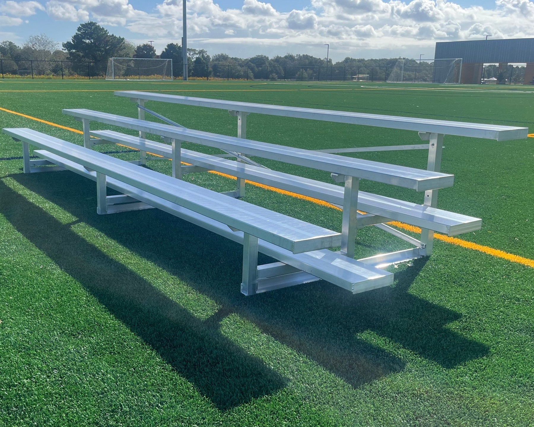 PEVO 3 Row Bleacher offers dependable seating with a lightweight all-aluminum design that is easy to assemble and built to last. With room for up to 30 people, it is the perfect choice for soccer fields, schools, or community venues. Wheels make it simple to move and position wherever needed. Upgrade your field with durable, portable seating made in the USA.
