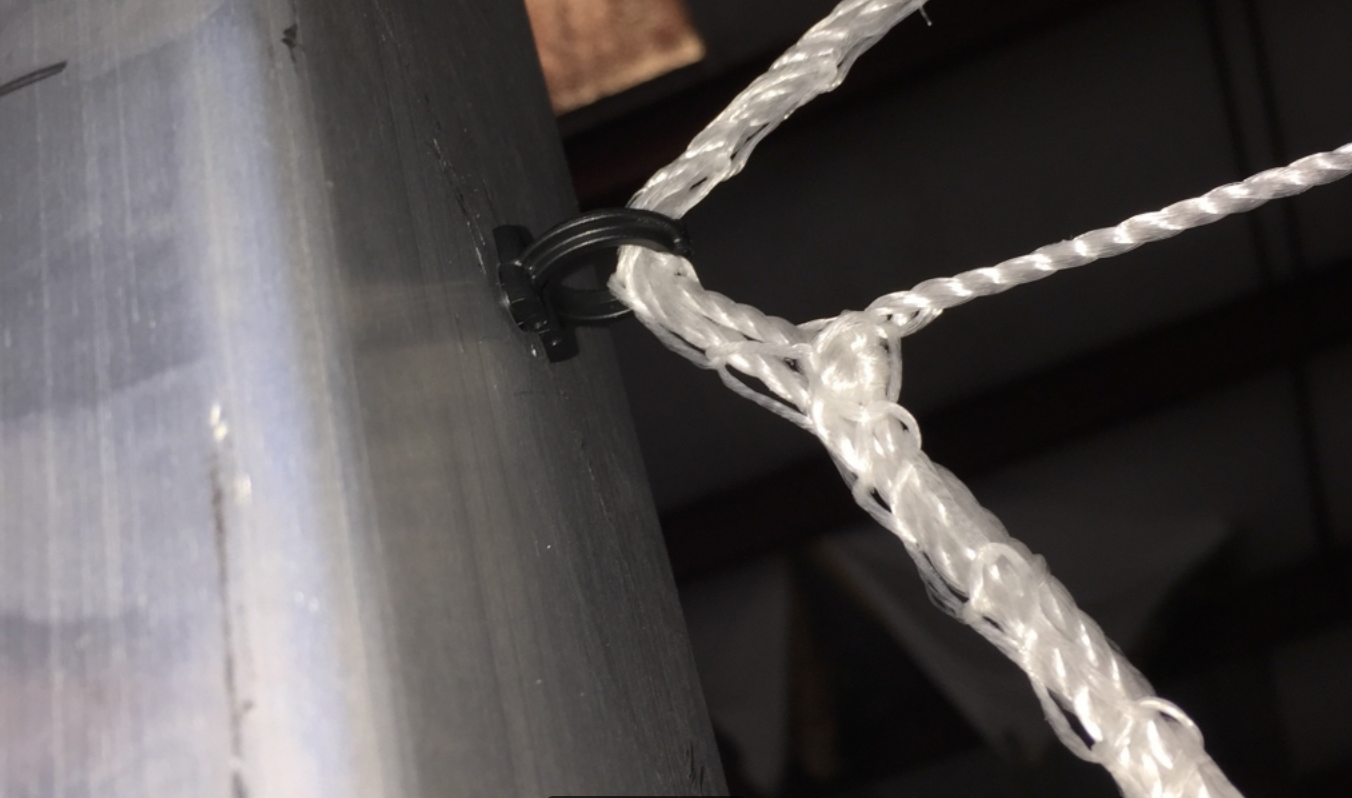 The PEVO StayNet Fasteners are designed to be used for any PEVO soccer goal series that features the StayNet hole system in the aluminum tubing (PEVO Competition and Club Goals). To attach the net, first place the net in the StayNet loop, and press into the pre-drilled hole in the tubing.